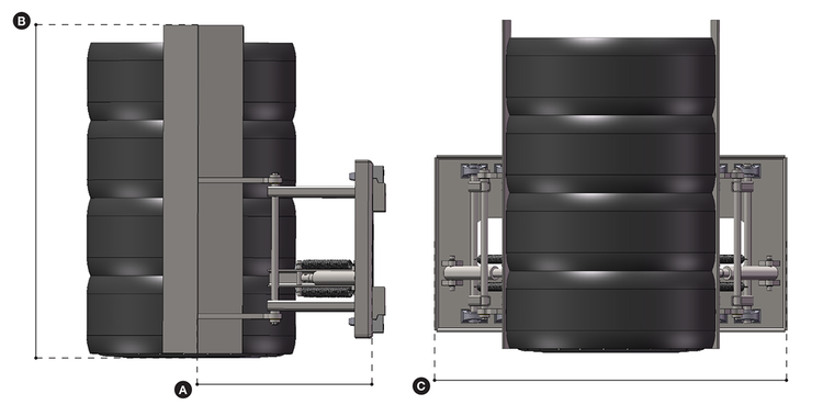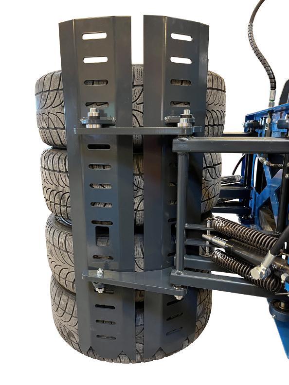 Med greppområde på Ø400 - 800 mm och en lyftkapacitet på 160 kg hanteras bildäck, med eller utan fälg, i set om 4.