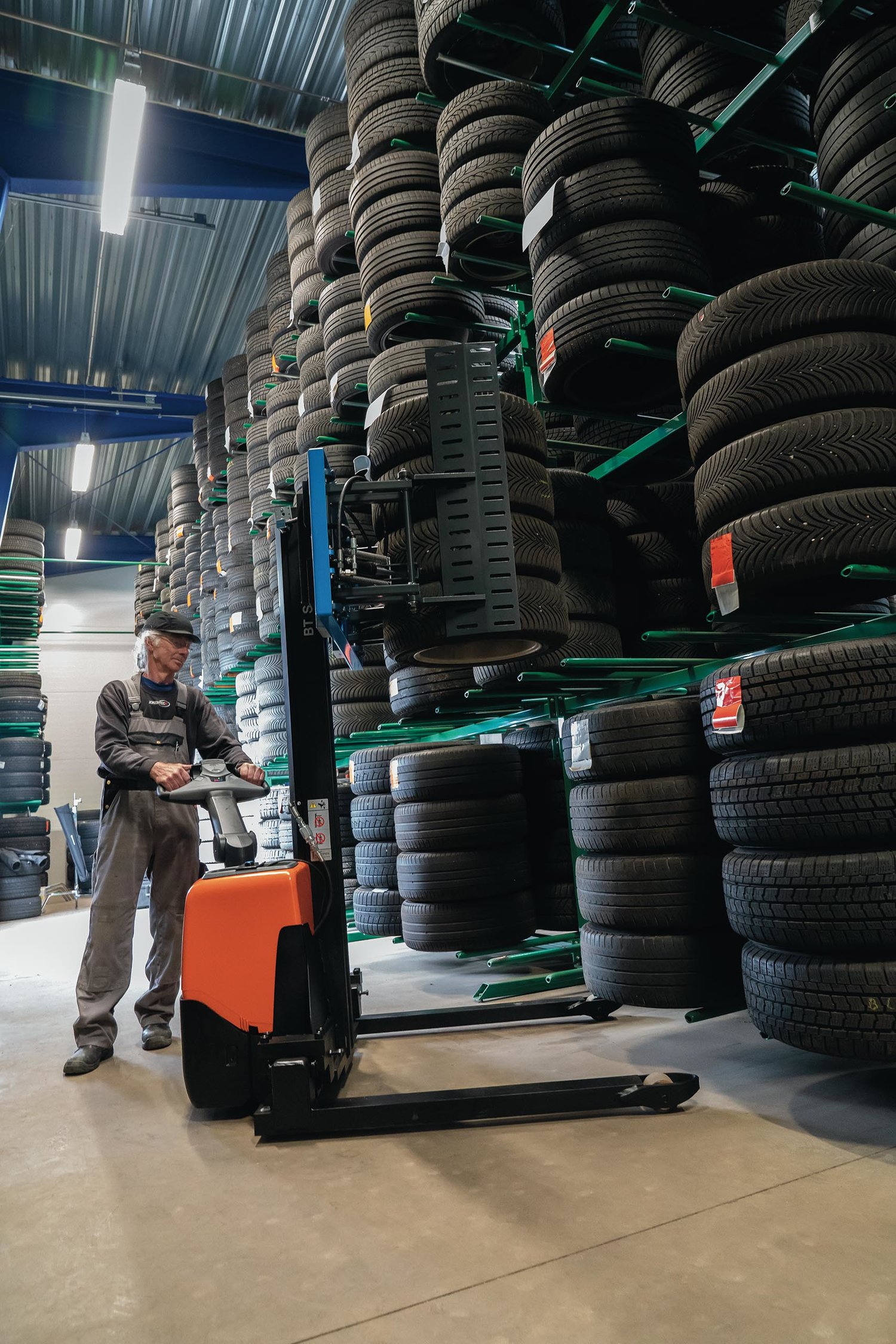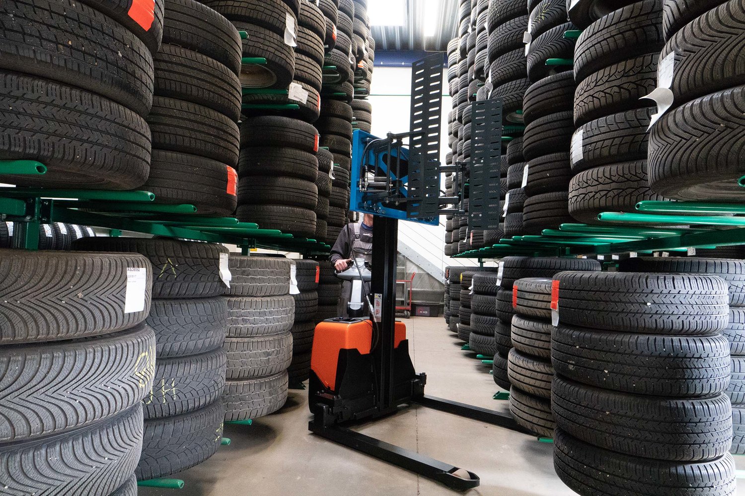 Ofta levereras färdiga sommarhjul och vinterhjul på pall och då vill man undvika manuell hantering av däcksatsen.
