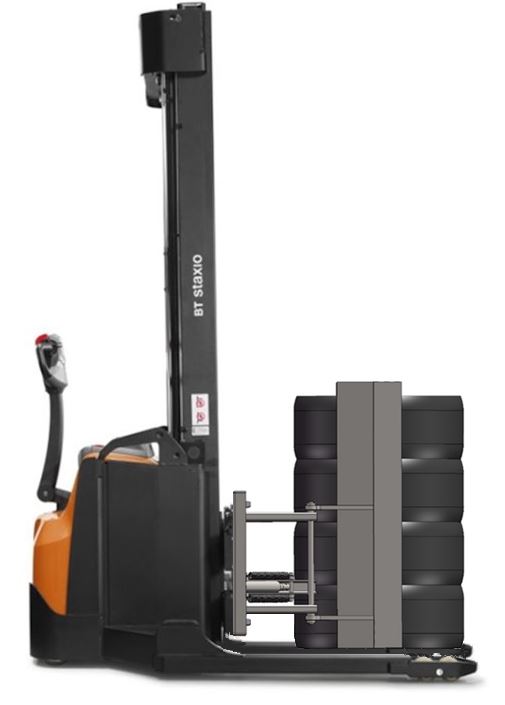 För elektriska däckstaplare. Enkelt att fästa direkt på gaffelvagnens platta.